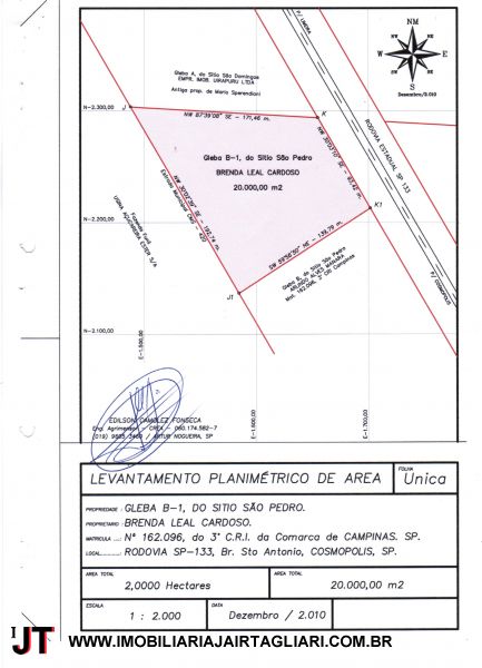 Área de 20.000 metros de frente para rodovia que liga Cosmópolis a Americana, ótima topografia para montar Industria